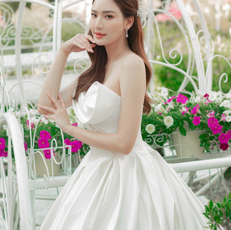 จะมีชุดไหนอธิบายสวยเฉียบของเจ้าสาว ได้เท่าชุดกุหลาบคาดอกเปิดไหล่ชุดนี้อีก ความยาวกระโปรงลากพื้นแต่เดินสะดวกท่วงท่าสง่า จับปอยผมเคลียแผ่นหลังหวานๆ หรือจะรวบขึ้นโชว์ลำคอระหงก็ดูเก๋ ยกให้เป็นชุดเจ้าสาวมินิมอลแต่สง่างามที่สุดของปีนี้!
